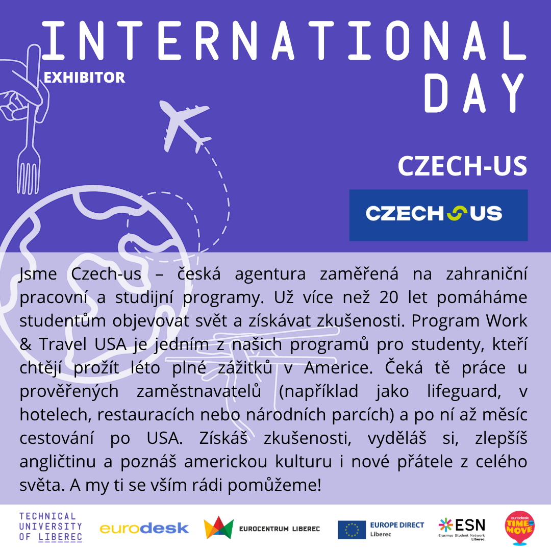 International Day je každoroční akcí Zahraničního oddělení TUL, Eurocentra Liberec a dalších partnerů, jejímž cílem je propagace mobilit do zahraničí a internacionalizace akademické půdy, školství a společnosti vůbec. Jedná se o veletrh příležitostí (stáže, studium, dobrovolnictví a práce) s přednáškami a diskusemi.